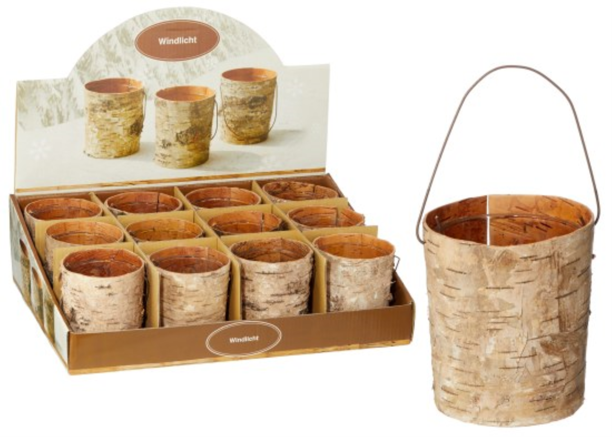 Windlicht Glas mit Baumrinde und Drahtbügel 8.5cm im Display