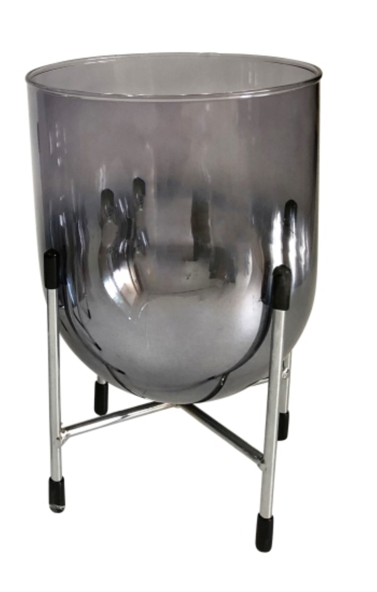 Windlicht mit Metallgestell grau silber Farbverlauf 12x12x19cm Glas
