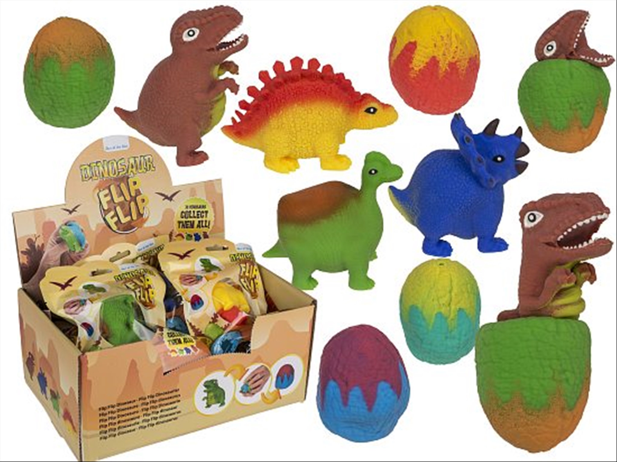 Dinosaurier Flip Flip 4ass 9cm einzeln im Folienbeutel 16Stk im Display