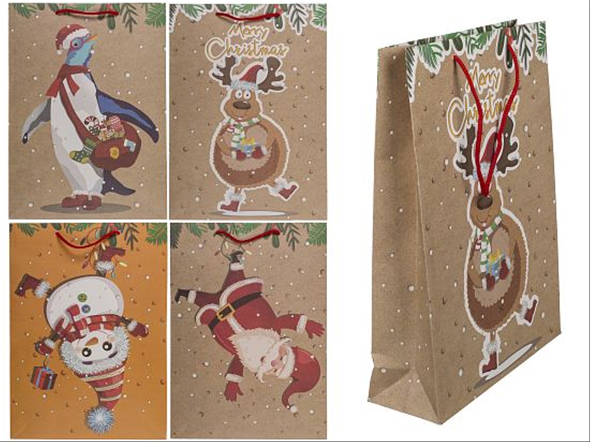 Geschenktasche lustige Weihnacht 4 Design ass 25x8.5x34.5cm 12 Stck im Polybeutel