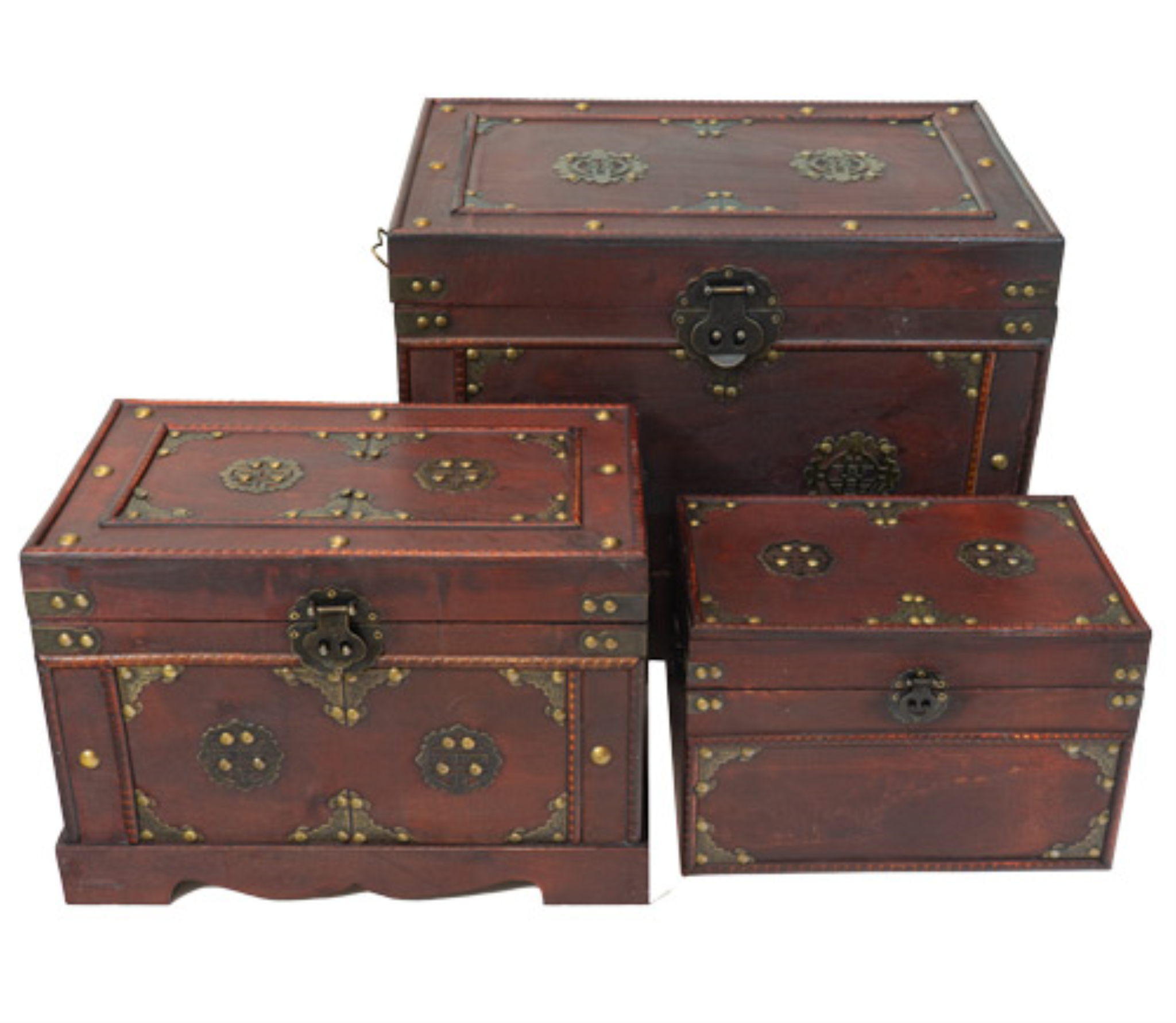 Truhen 3er Set mit Nieten 48.5x32x34cm/41.5x26.5x27.5cm/35x21.5x21cm Holz