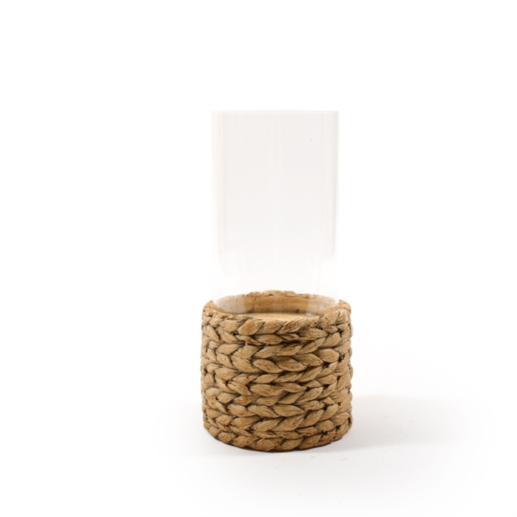 Windlicht Glas und Zement in Flechtoptik 14x30cm