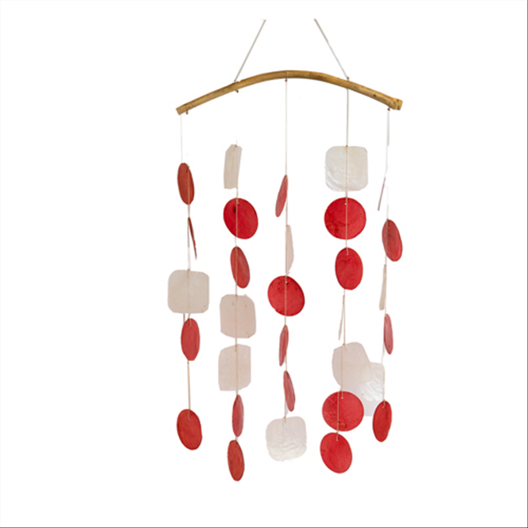 Windspiel mit Capizmuschel rot weiss Rattan 59cm
