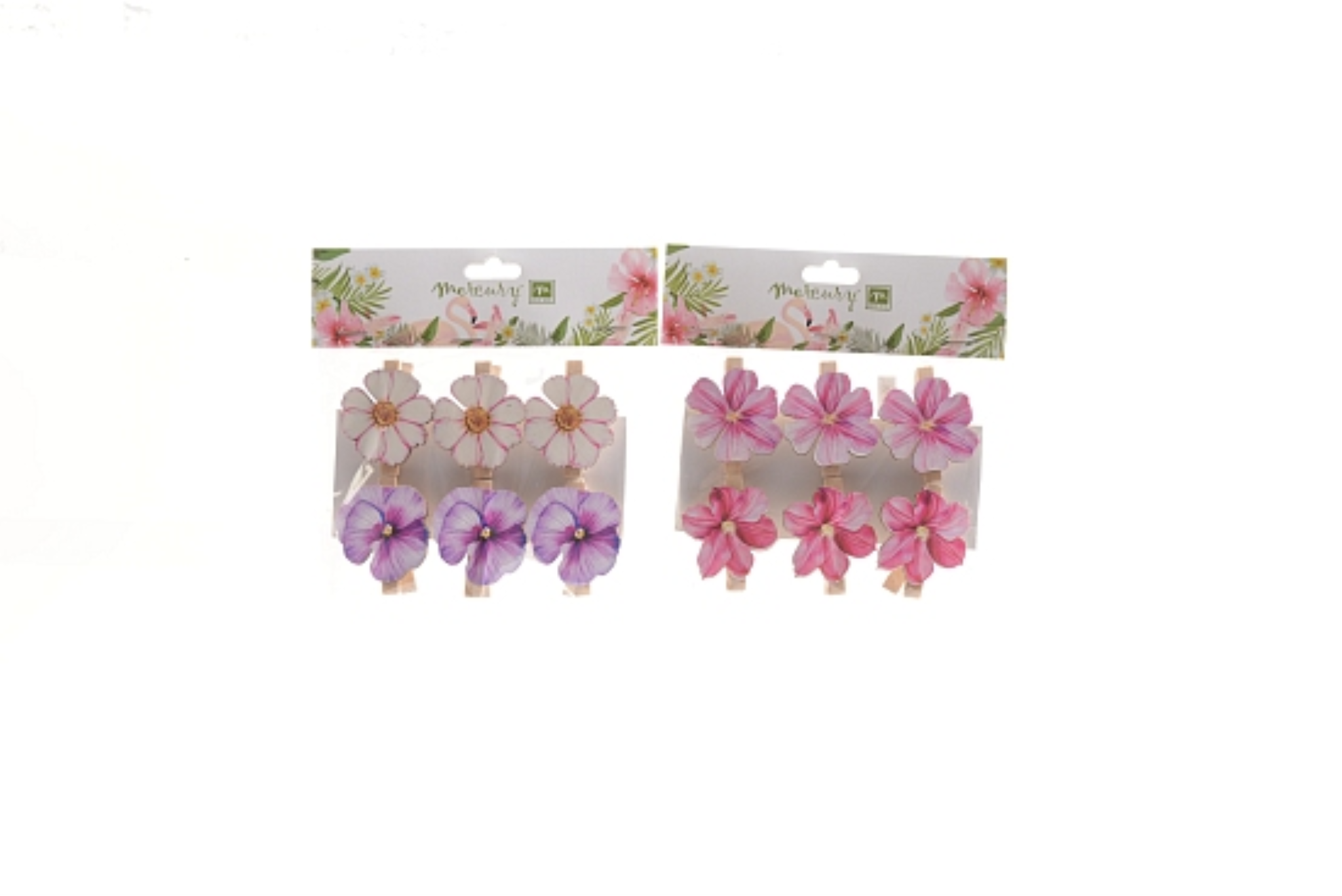 Dekoklammern 6er Set Blüten 2ass 3.5x4.5cm Holz